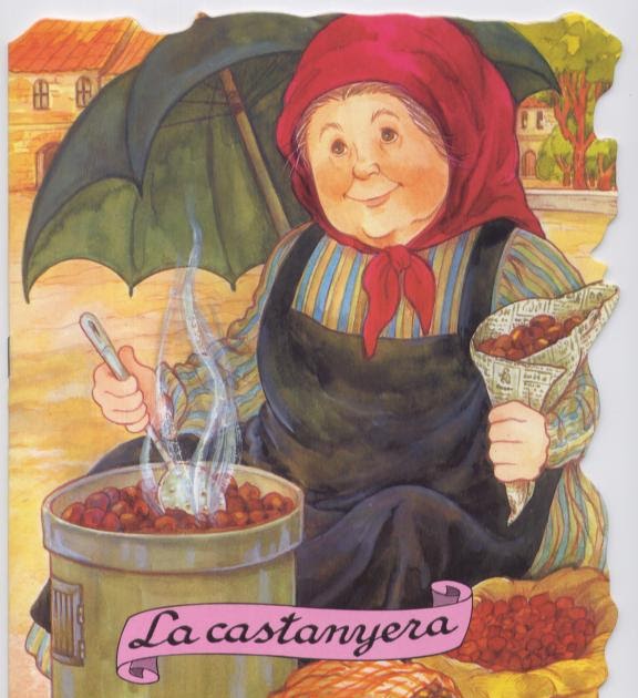 « L’automne a inspiré l’histoire de Tana, une castanyera, sous forme de conte. La vendeuse de châtaignes, emmitouflée dans sa robe épaisse et son châle, un foulard sur la tête, avait pour habitude d’en offrir quelques-unes aux enfants qui sortaient de l’école. Attentionnée, elle leur racontait des contes, qu’ils croyaient les yeux fermés. Mais une autre castanyera espérait avoir autant de succès que Tana, et lui vola son lot de châtaignes. En vain. La séduction ne prit pas et les enfants coururent immédiatement chez leur castenyera préférée pour la consoler. Une leçon pour la castenyara voleuse qui vint s’excuser. Les deux femmes devinrent finalement amies et parvinrent à vendre toutes deux des châtaignes ». (https://www.equinoxmagazine.fr/2022/10/31/la-castanyada/)
