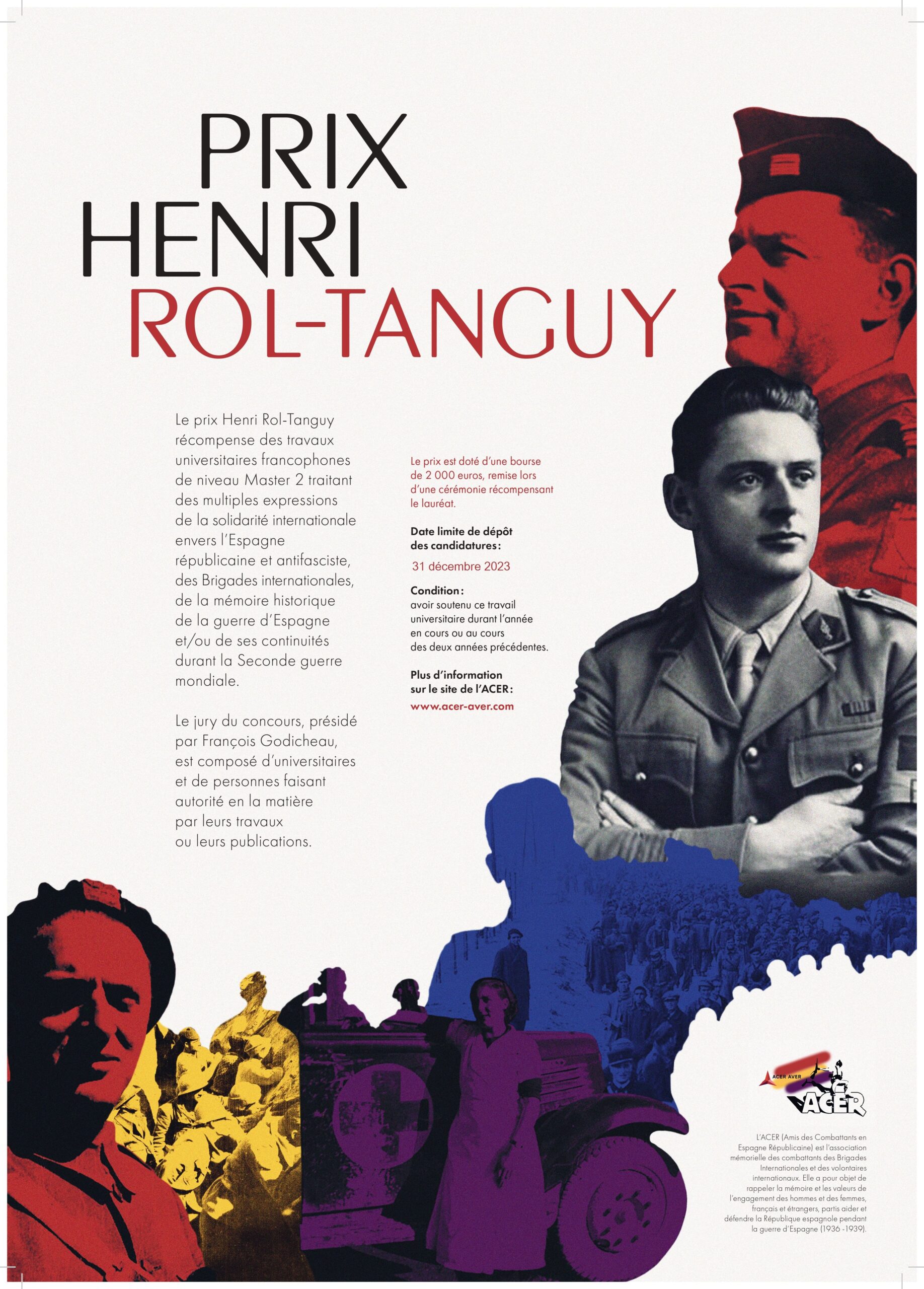 Cette année, le Prix a été décerné à Jean Schaller. Il a soutenu son Mémoire, rédigé sous la direction du Professeur Thomas Bouchet, le 9 juillet 2024 à l’Université de Lausanne (UNIL), dans l’UFR : Institut d’Études politiques (IEP), à la Faculté des Sciences sociales et politiques. « Ce Mémoire est aujourd’hui récompensé par le Prix Henri Rol-Tanguy, à l’unanimité du jury. C’est dire s’il a été apprécié par les membres du jury, tant pour sa forme, que pour sa rigueur et son angle d’attaque nouveau. Vous vous êtes intéressé aux volontaires neuchâtelois lors de la Guerre d’Espagne (1936-1939), à des combattants qui n’ont rêvé d’aucune gloire militaire et qui auraient pu dire, comme l’Émir Abdelkader après la bataille de Sidi Brahim : « Je n’ai point fait les événements, ce sont les événements qui m’ont fait ce que j’ai été ». Je voudrais vous dire, au nom du jury et au nom de l’ACER, combien nous sommes heureux de remettre ce prix à un étudiant francophone, suisse. Cela n’a pas pesé dans notre délibération bien évidemment mais voir ce prix sortir de nos frontières françaises est un grand contentement. C’est le signe que ses racines donnent de belles récoltes. Dans votre travail, vous avez rappelé combien la Guerre d’Espagne est un moment important dans l’histoire humaine, un moment différent, dans son existence comme dans ses conséquences. Ce faisant, vous nous dites aussi que la nuit des hommes n’est pas toujours irrémédiable et définitive, elle ressemble au soleil qui s’enfonce chaque jour dans la mer pour réapparaître à l’aurore. Et vous rendez la lumière à ces volontaires que menacent l’oubli, le reniement, les surenchères ou la haine. Pour cela, et pour tout ce que j’ai rappelé, et peut-être pour ce que j’ai oublié, le jury a décidé que votre mémoire réunissait pleinement les critères scientifiques requis pour le Prix Henri Rol-Tanguy. Bravo à vous, Jean Schaller. Et merci à vous ».