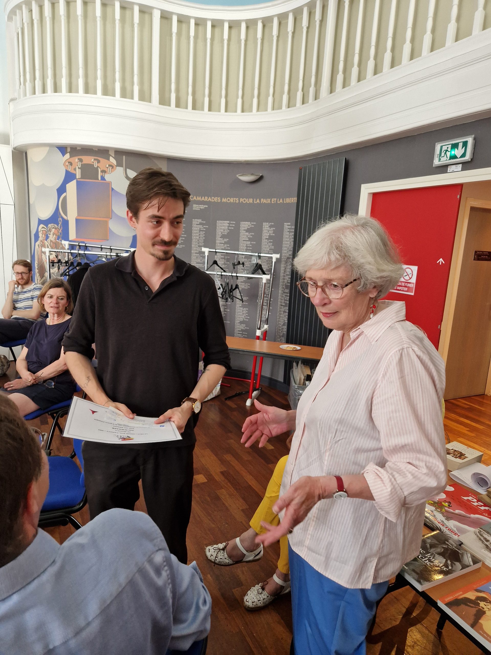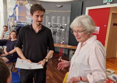 Au discours de la Présidente a répondu le jeune lauréat en présence de sa famille et de son ami d’enfance venus spécialement de Suisse, avant de recevoir des mains de Claire Rol-Tanguy, le Prix et une enveloppe de 2000 €.