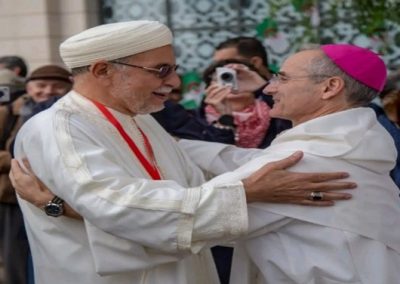 Deux heures de discussion aimable pour échanger, se dire, se raconter, parler « à l’orientale » de ces rives de la Méditerranée qui nous unissent, de cette terre d’Algérie qui porte le poids et la vie d’une partie de ma famille ; qui me fait être aussi un fils d’Algérie. Cette terre qui résonne si fort, si belle, si riche, si grande ; et qui pourrait être appelée… si Dieu le veut à jouer un rôle de premier plan. Je pense surtout à la jeunesse, au mouvement d’espoir soulevé par le Hirak. Le Sirocco ne souffle pas pour le moment le changement tant attendu, mais toujours celui de la fraternité autour de ses grandes villes, de ses campagnes, de son désert, des Aurès et de la Mitidja, de Notre Dame de Santa Cruz, et de Notre Dame d’Alger qui veille sur la Ville Blanche… une île « Al Djezaïr » au milieu d’un grand tout, qui regarde à l’horizon les côtes de la rive occidentale… Décidemment, la Mosquée de Paris et son Recteur ont un beau travail à accomplir pour que ces deux rives puissent à nouveau (bientôt, j’espère) s’embrasser inch’Allah ! On a le droit de rêver…