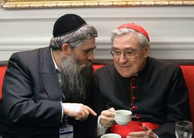 Seuls cette confiance et ce respect mutuels permettent de vivre dans l’amour véritable la tension structurelle qui traverse les relations du judaïsme et du christianisme et rend possible leur témoignage ; seuls, ils leur permettent de « donner ensemble un témoignage encore plus unanime » comme le dit Benoît XVI, « collaborant sur le plan pratique pour la défense et la promotion des droits de l’homme et du caractère sacré de la vie humaine, pour les valeurs de la famille, pour la justice sociale et pour la paix du monde. » Sur tous ces points, le respect du décalogue nous réunit dans une même vision du bien de l’homme et de son véritable épanouissement.